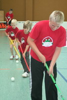 Inzwischen üben nämlich eine ganze Menge Kinder, ordentlich mit dem Unihockey-Stock umzugehen: Die Kleinen, die sind zwischen drei und sieben Jahren alt.